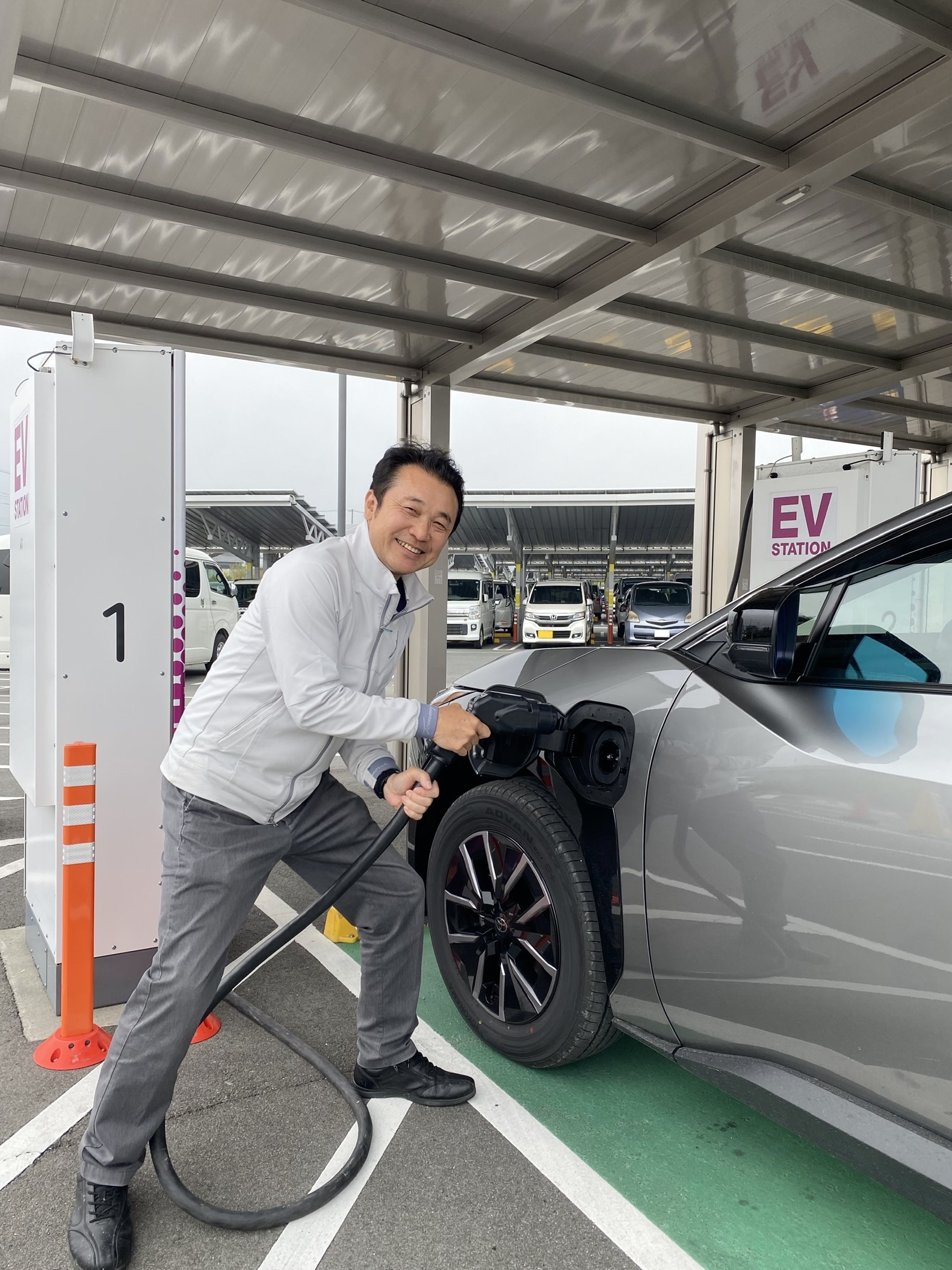 環境にやさしい電気自動車!安全祈願と初充電の様子