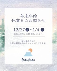 年末年始は12/27(土)から1/4(日)まで休業させていただきます
