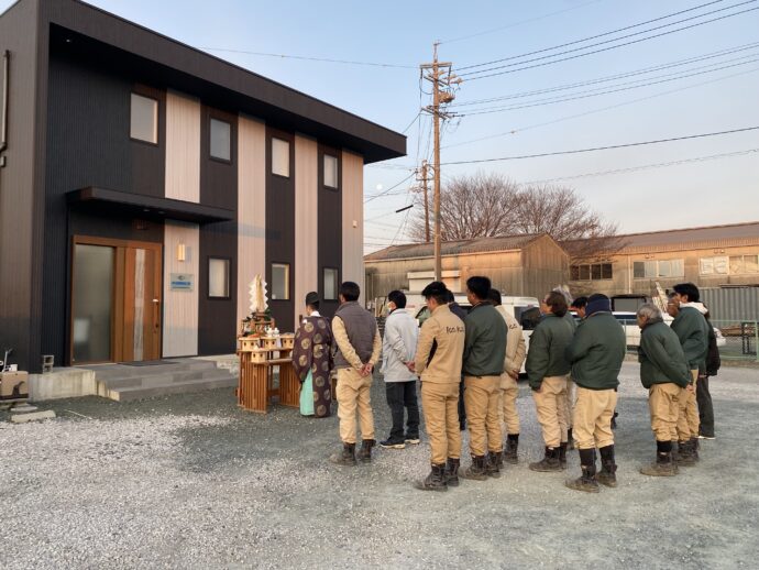ダンプや重機、社員の車も一台一台お祓いしていただきました。