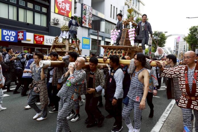 お神輿を担いで、豊橋駅前の広小路を練り歩きます!