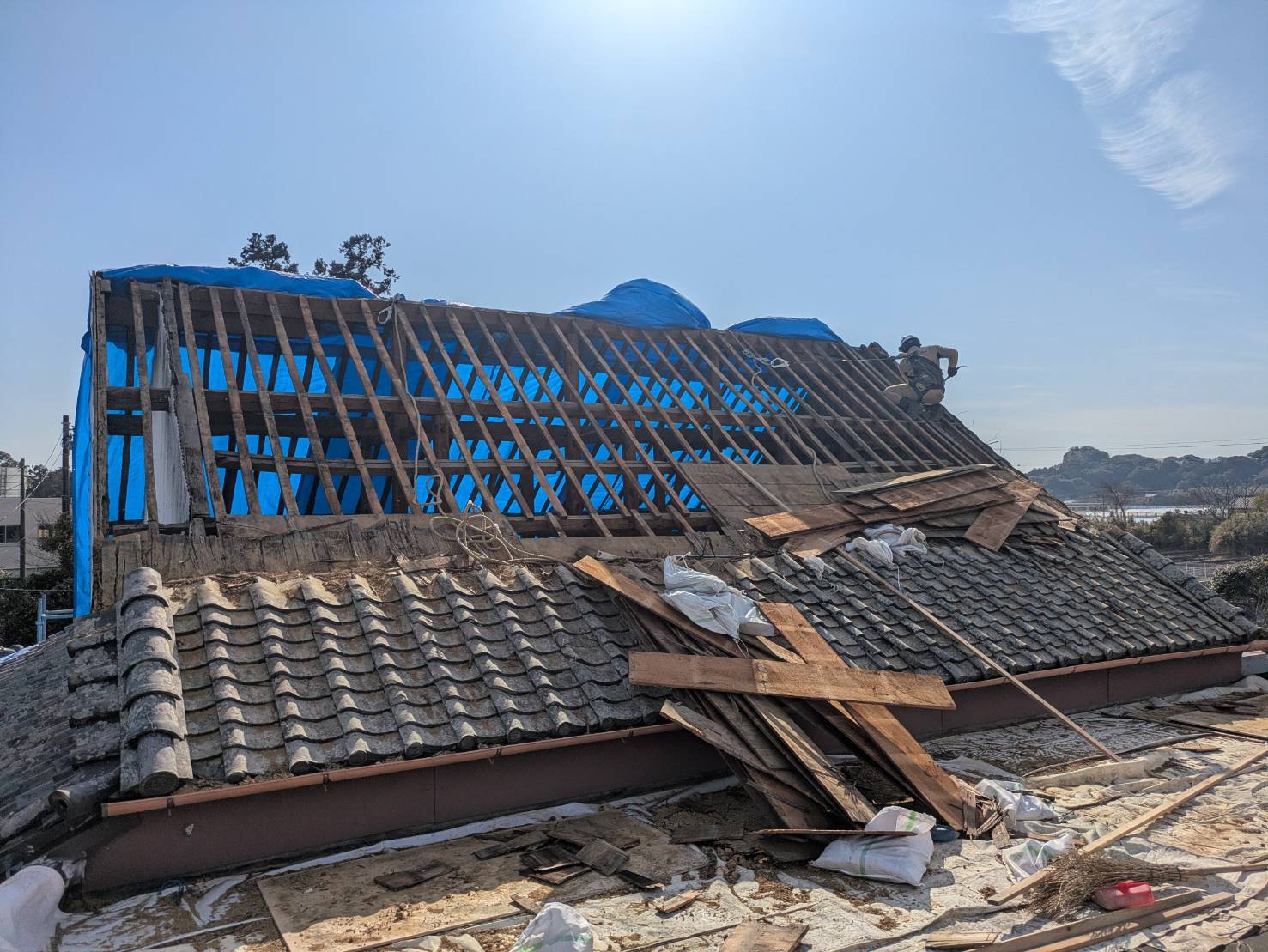 瓦、屋根土、杉皮、野地板の撤去