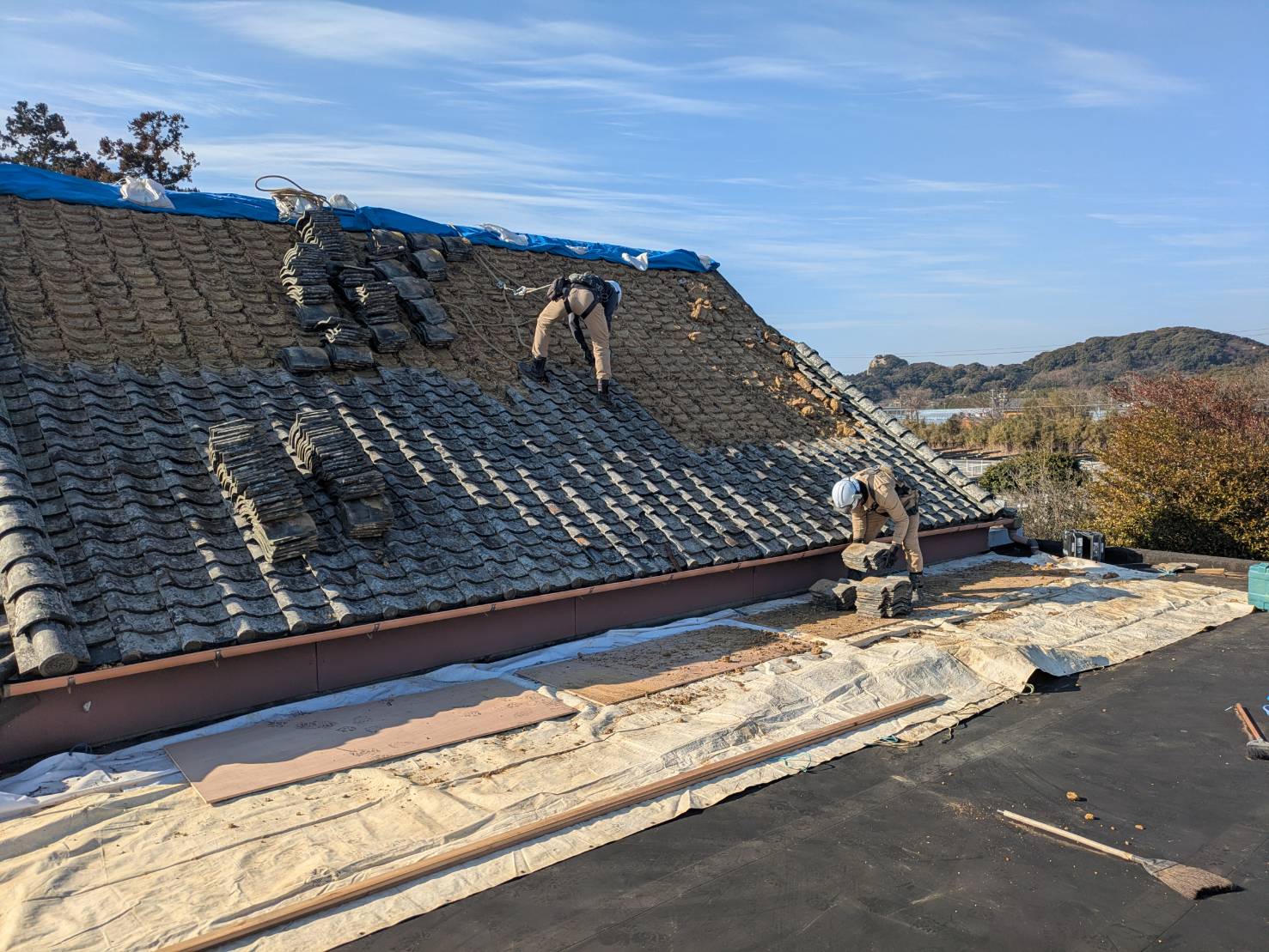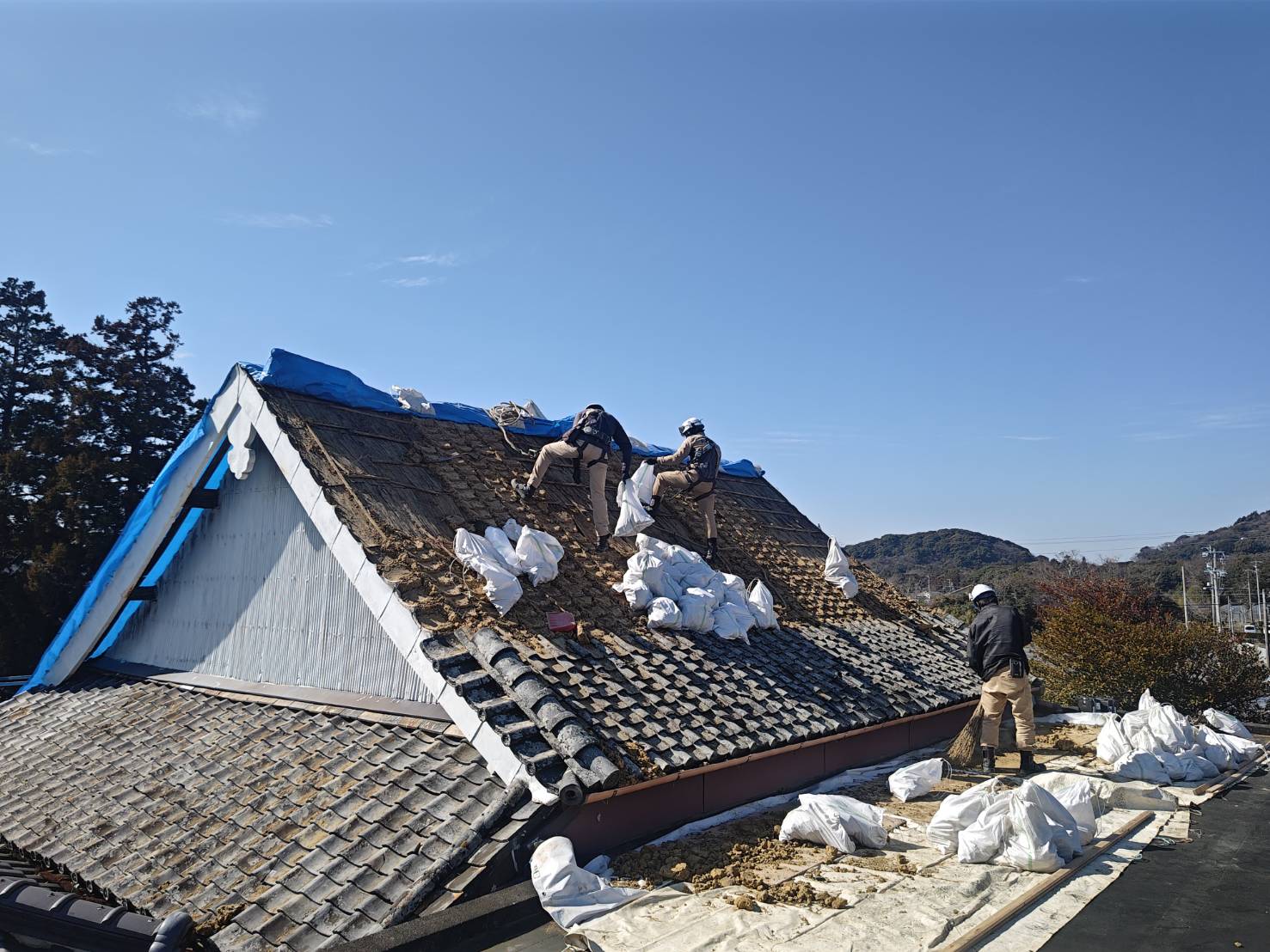 ブルーシート貼り(雨養生)